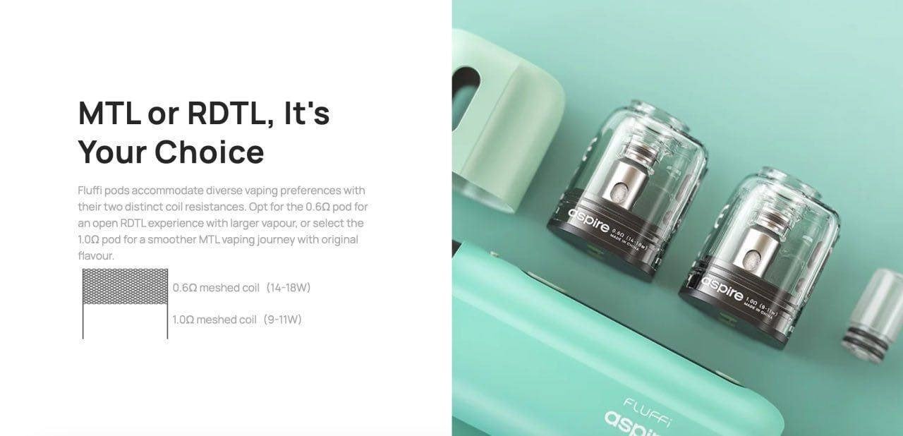 | Aspire Fluffi POD | 套裝-白色, 套裝-鈦米色, 套裝-鈦綠色, 套裝-黃色, 套裝-粉色, 套裝-藍色, 套裝-黑色, 套裝-紫色, 0.6歐芯(二入), 1歐芯(二入 |